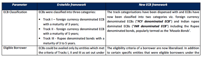 Tabulated below is a comparative analysis of certain ECB parameters under the Erstwhile Framework vis-à-vis the New ECB Framework: