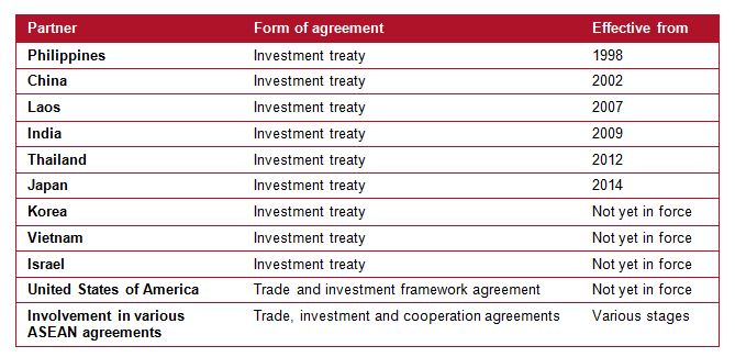 Data from Investment Policy Hub, available at http://investmentpolicyhub.unctad.org/IIA/CountryBits/144